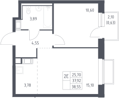 2-комнатная квартира № 320, 37.92 м2 с отделкой 11 эт.