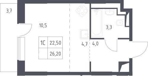 Студия № 84, 22.50 м2 с отделкой 6 эт.