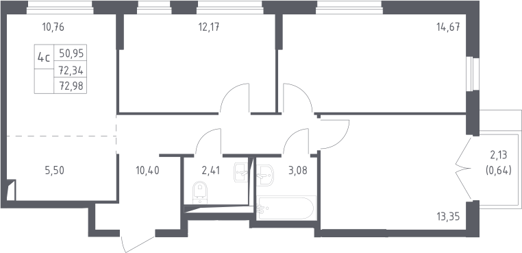 4-комнатная квартира № 9, 72.34 м2 с отделкой 3 эт.