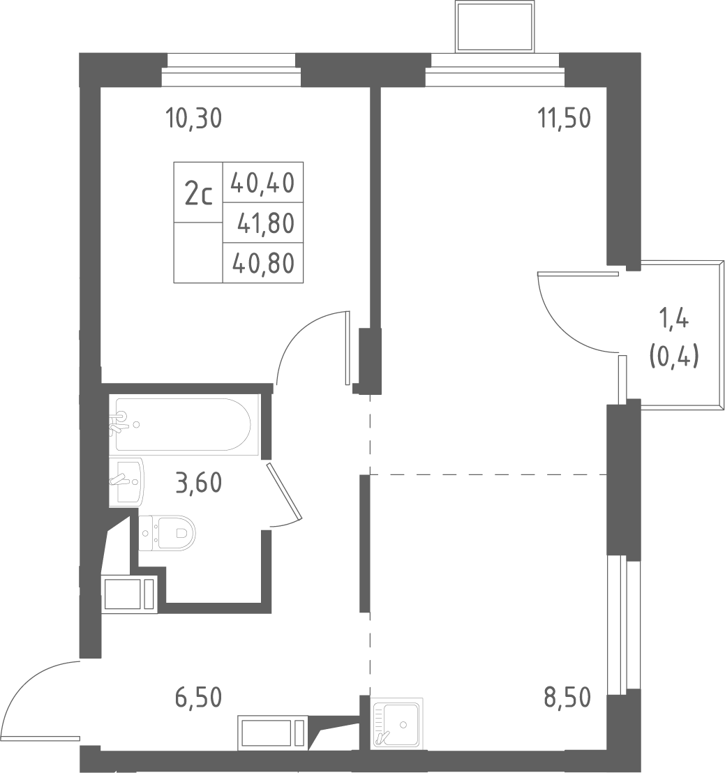 2-комнатная квартира № 27, 40.40 м2 с отделкой 4 эт.