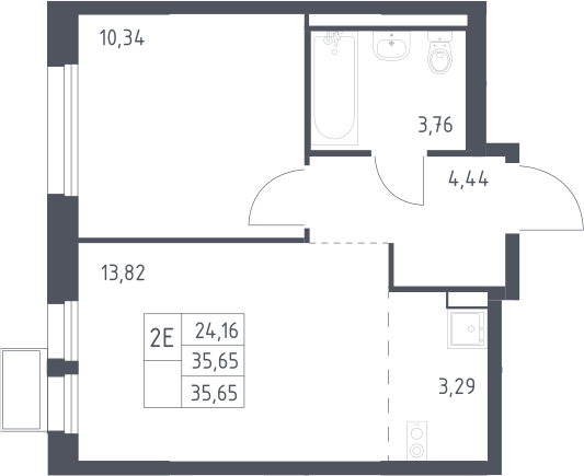 2-комнатная квартира № 185, 35.65 м2 с отделкой 11 эт.