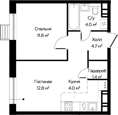 2-комнатная квартира № 489, 38.70 м2 без отделки 18 эт.