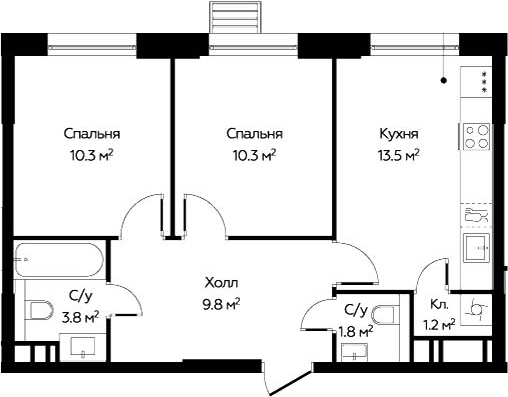 2-комнатная квартира № 647, 50.70 м2 с отделкой 1 эт.