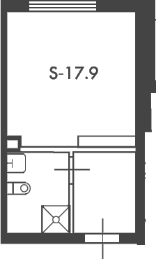 Студия № 5, 17.90 м2 с отделкой 1 эт.