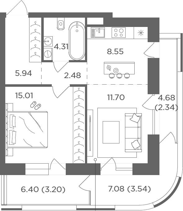 Вы можете купить сразу или в ипотеку в онлайн, этот объект под номером 7 на 3 этаже без отделки, 2-комнатная квартира. Сдача объекта застройщиком планируется 4 кв 2023 г. Известно, что высота потолков начинается от 3.15.
