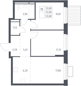 3-комнатная квартира № 5, 53.08 м2 с отделкой 2 эт.