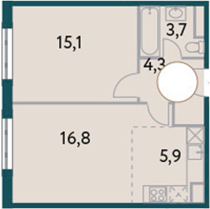 2-комнатная квартира № 406, 45.80 м2 без отделки 8 эт.