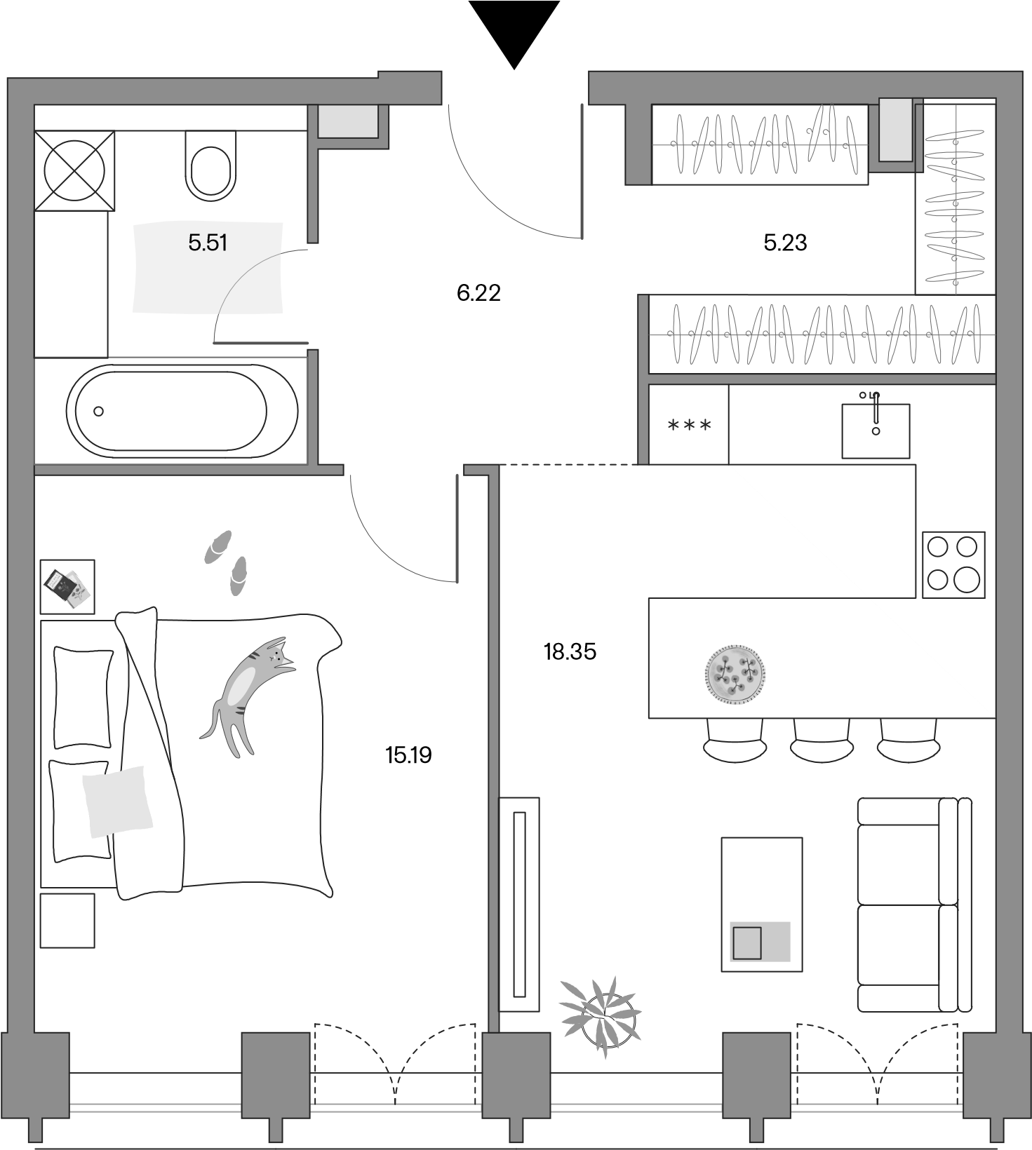 Вы можете купить сразу или в ипотеку в онлайн, этот объект под номером 4.2-2-4 на 2 этаже с отделкой, 2-комнатная квартира. Сдача объекта застройщиком планируется 2 кв 2022 г. Известно, что высота потолков начинается от 3.00.