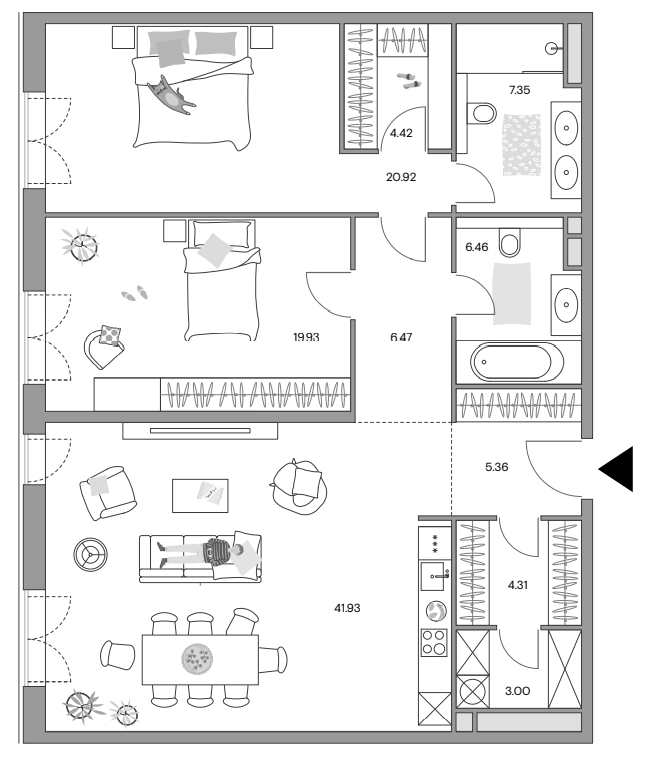 3-комнатная квартира № 4.1-18-4, 119.49 м2 с отделкой 18 эт.