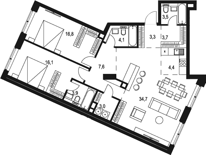 3-комнатная квартира № 4, 101.10 м2 без отделки 2 эт.