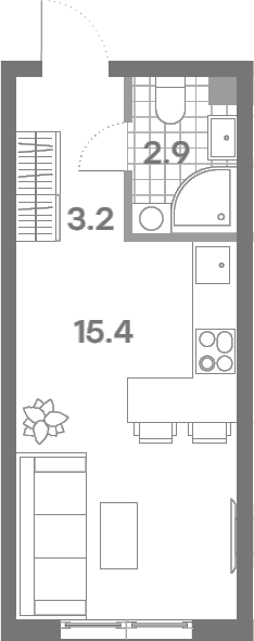 Студия № 525, 21.50 м2 без отделки 9 эт.