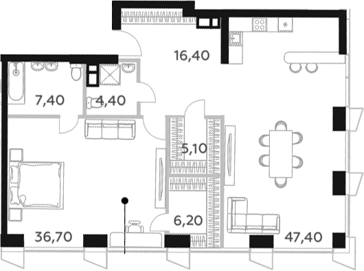 2-комнатная квартира № 1887, 123.60 м2 без отделки 52 эт.