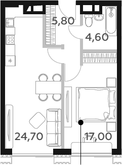 2-комнатная квартира № 602, 52.10 м2 без отделки 45 эт.