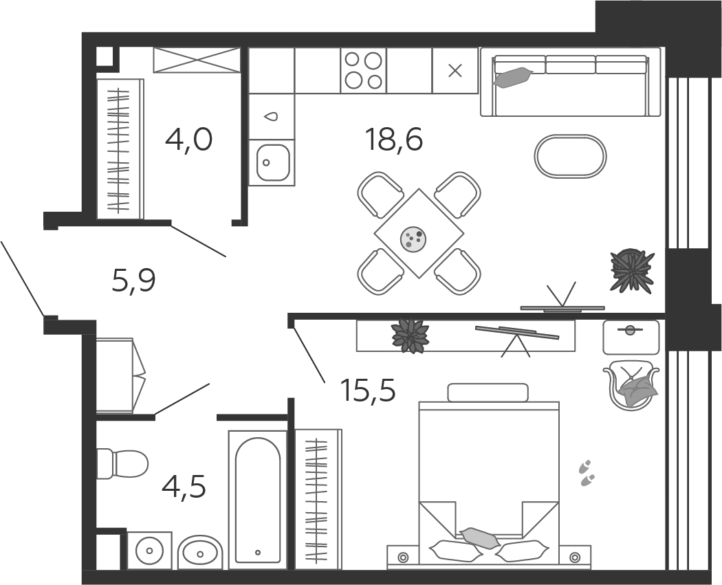 2-комнатная квартира № 149, 48.50 м2 без отделки 5 эт.