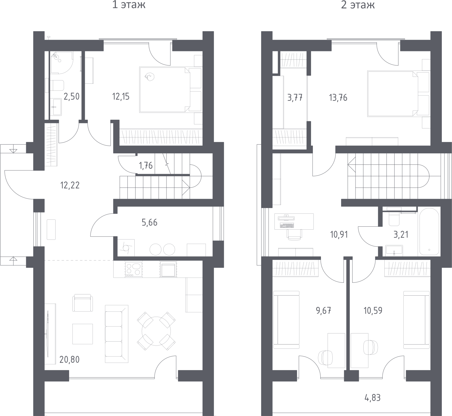 Студия № ДМИ1/1/2-2.5/Д, 107.00 м2 с отделкой 1 эт.