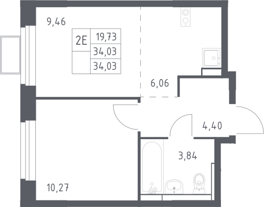 2-комнатная квартира № 311, 34.03 м2 с отделкой 10 эт.