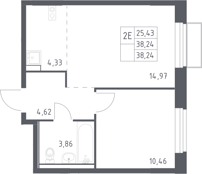 2-комнатная квартира № 103, 38.24 м2 с отделкой 11 эт.