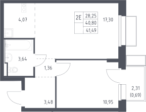 2-комнатная квартира № 315, 40.80 м2 с отделкой 2 эт.