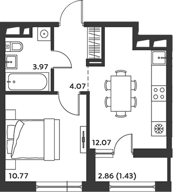 1-комнатная квартира № 387, 30.47 м2 с отделкой 13 эт.