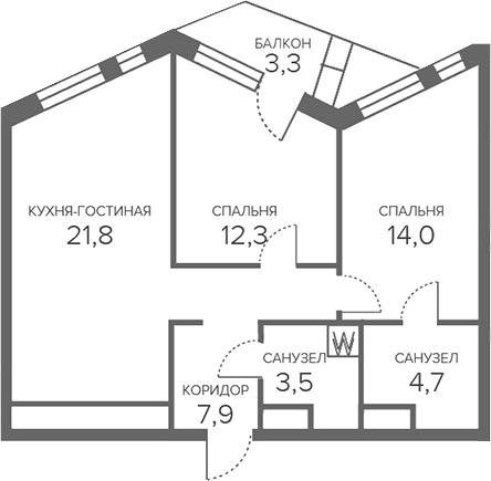 3-комнатная квартира № 39, 64.25 м2 с отделкой 5 эт.