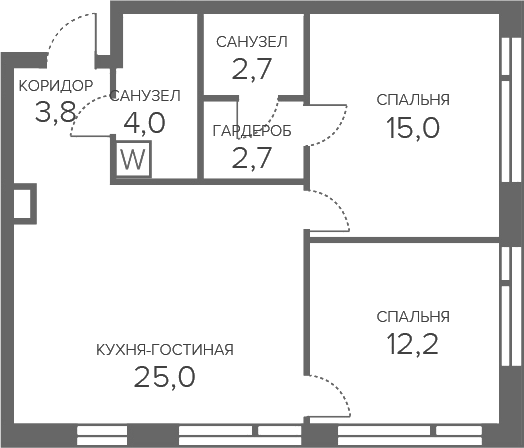 3-комнатная квартира № 94, 65.32 м2 с отделкой 3 эт.