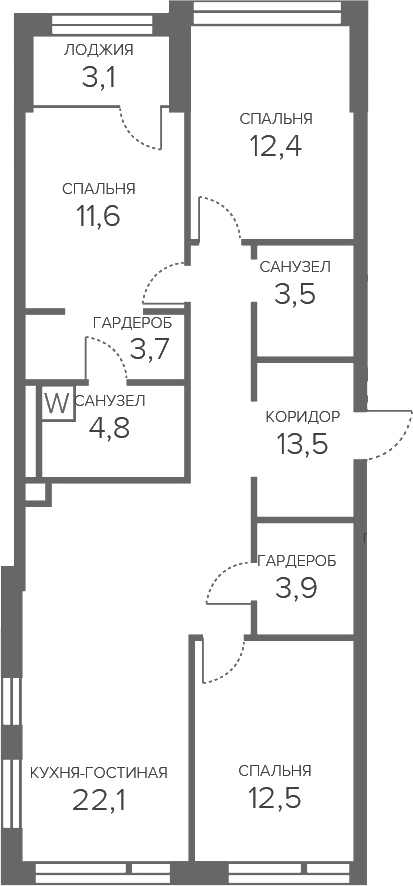 4-комнатная квартира № 121, 88.13 м2 с отделкой 7 эт.