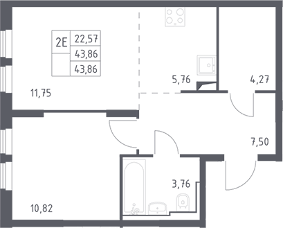 2-комнатная квартира № 346, 43.86 м2 с отделкой 2 эт.