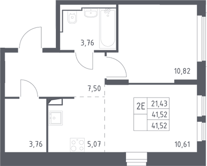 2-комнатная квартира № 871, 41.52 м2 с отделкой 6 эт.
