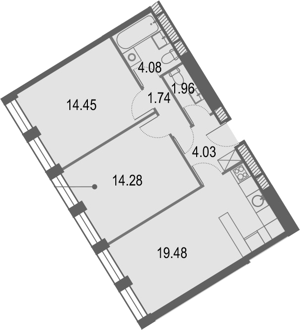 3-комнатная квартира № 448, 60.02 м2 без отделки 36 эт.