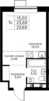 Студия № 298, 23.69 м2 с отделкой 3 эт.