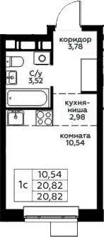 Студия № 158, 20.82 м2 с отделкой 13 эт.