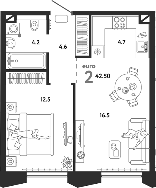2-комнатная квартира № 87, 42.50 м2 без отделки 14 эт.
