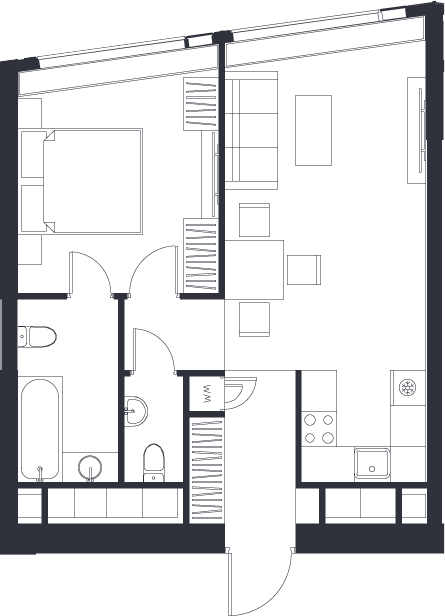 Студия № 424, 53.80 м2 без отделки 46 эт.