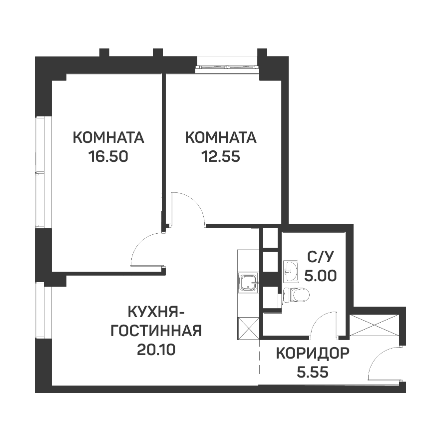 3-комнатная квартира № 30А, 59.00 м2 с отделкой 2 эт.