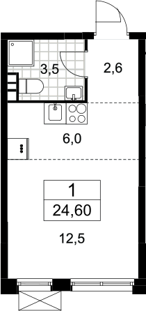 Студия № 99, 24.60 м2 без отделки 3 эт.