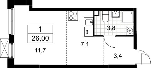 Студия № 423, 26.00 м2 с отделкой 2 эт.