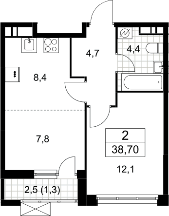 2-комнатная квартира № 679, 37.40 м2 с отделкой 10 эт.