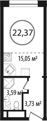 Студия № 220, 22.66 м2 без отделки 8 эт.