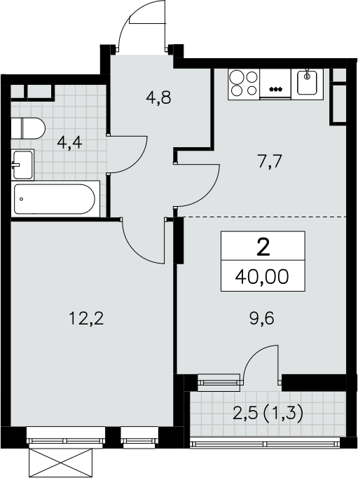 Студия № 1023, 22.40 м2 с отделкой 7 эт.