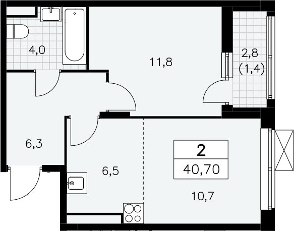 2-комнатная квартира № 1149, 47.20 м2 с отделкой 13 эт.