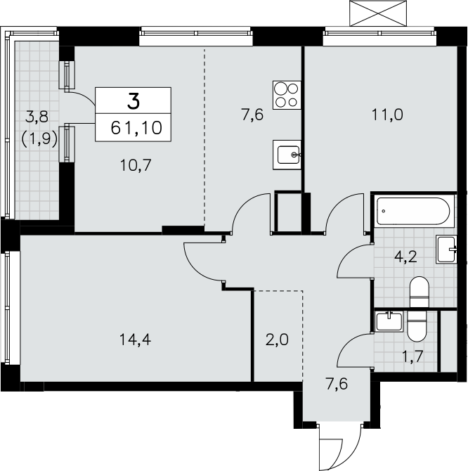 4-комнатная квартира № 559, 70.30 м2 с отделкой 14 эт.