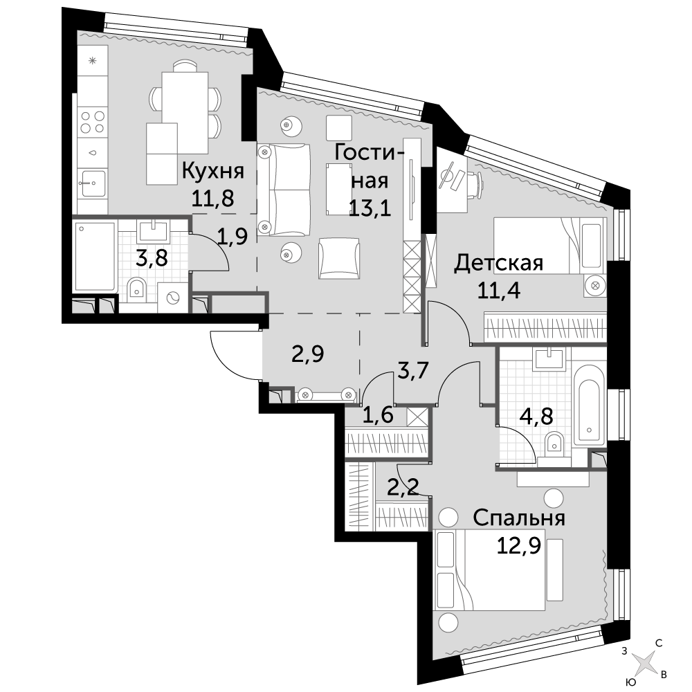 Вы можете купить сразу или в ипотеку в онлайн, этот объект под номером 218 на этаж 3 из 29 без отделки, 3-комнатная квартира. Сдача объекта застройщиком планируется 1 кв 2025 г.