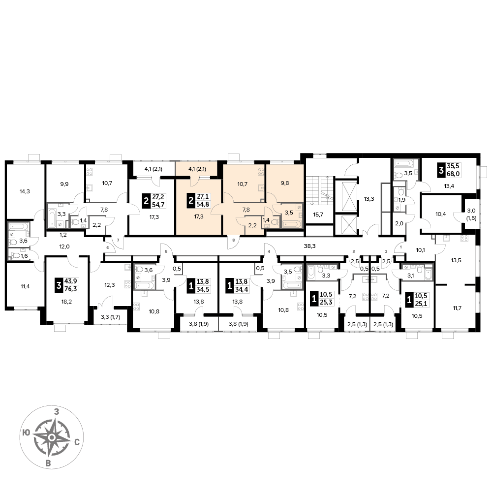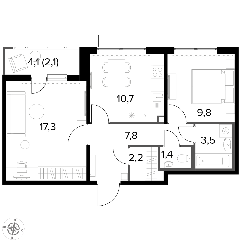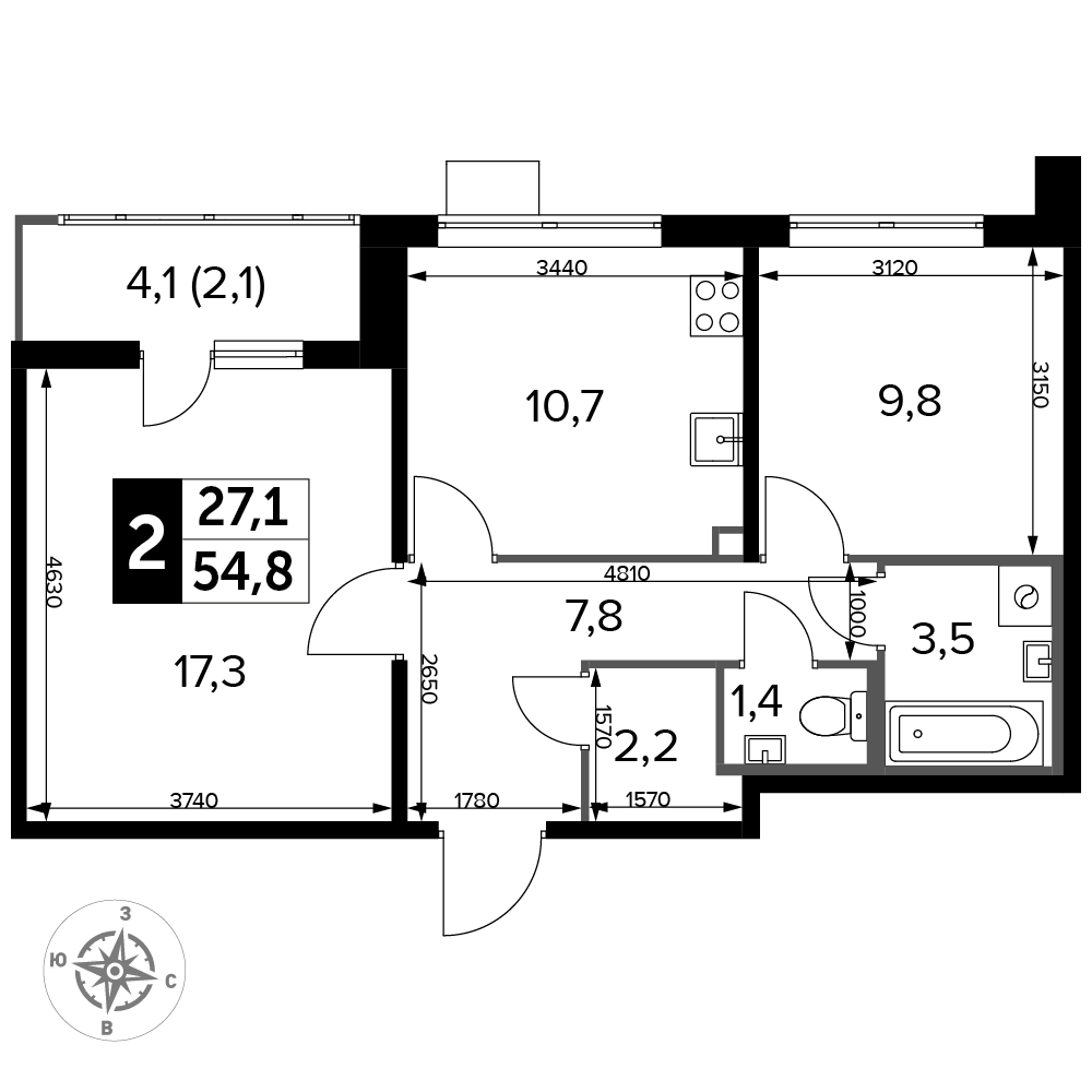 2-комнатная квартира № 773, 54.80 м2 white-box 20 эт.