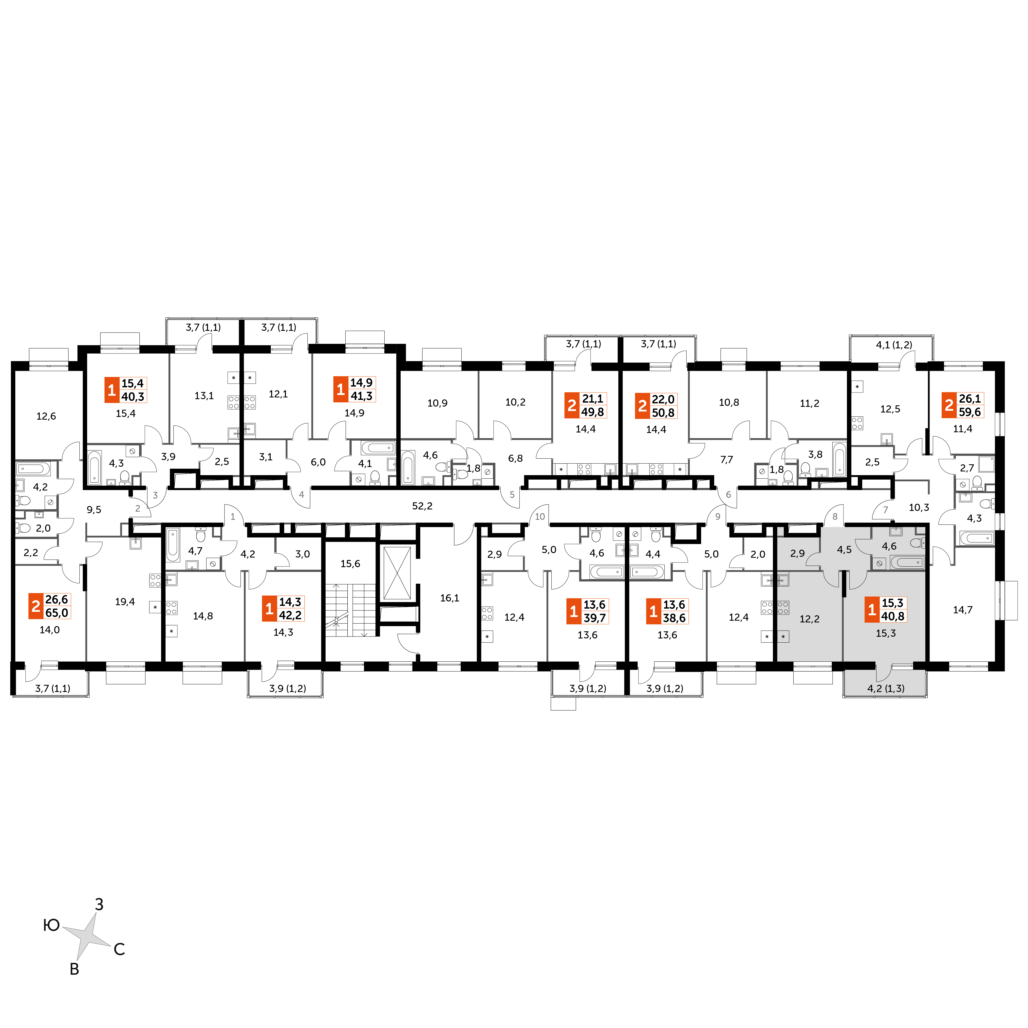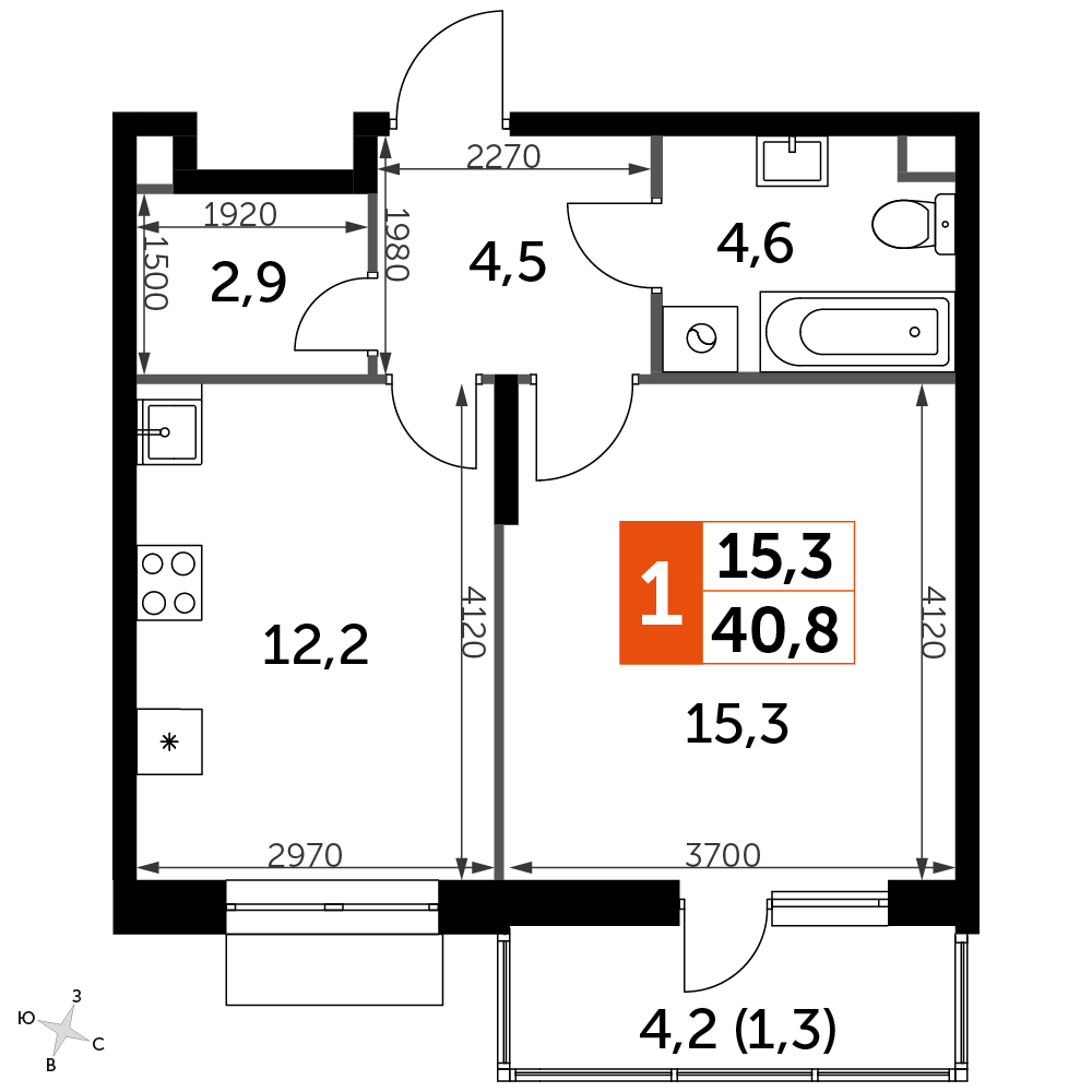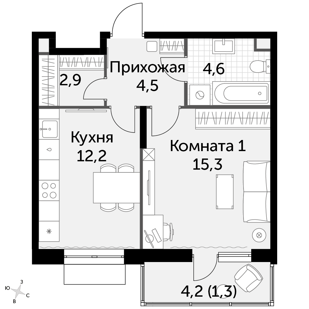 1-комнатная квартира № 132, 40.80 м2 white-box 5 эт.