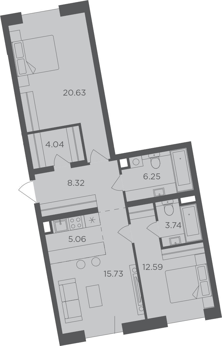 3-комнатная квартира № 298, 76.36 м2 без отделки 13 эт.