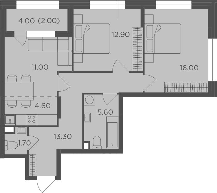 3-комнатная квартира № 251, 65.10 м2 без отделки 10 эт.
