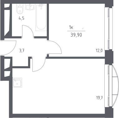2-комнатная квартира № 206, 39.90 м2 с отделкой 23 эт.