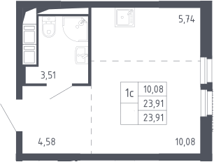 Студия № 473, 23.91 м2 с отделкой 15 эт.