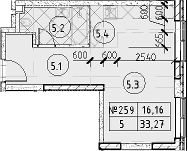 Студия № 259, 33.27 м2 с отделкой 28 эт.