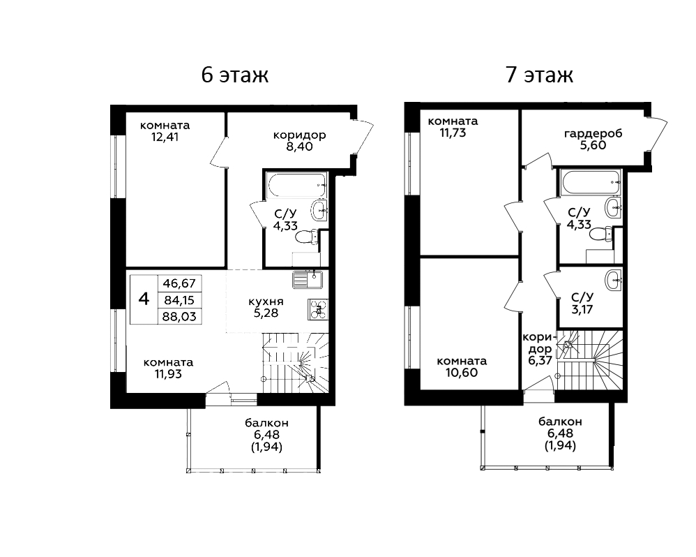 4-комнатная квартира № 362, 84.15 м2 с отделкой 6 эт.